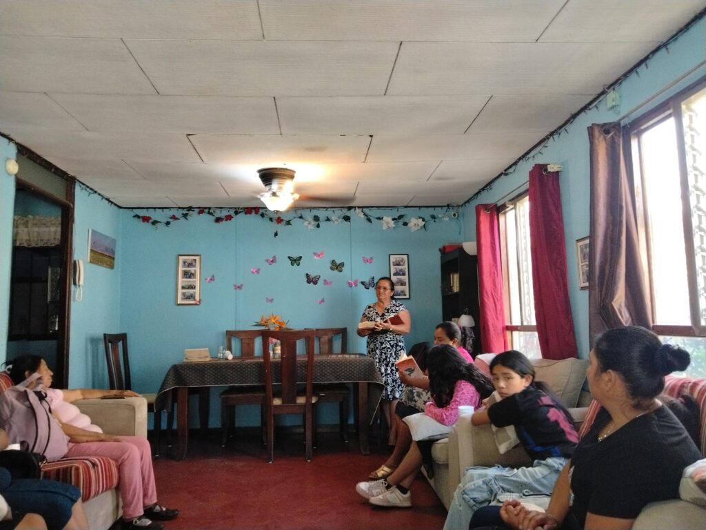 Ilsa teaching a discipleship class to the families